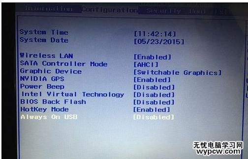 若已經(jīng)卸載了lenovo settings,那么請(qǐng)進(jìn)入Bios設(shè)置,方法是啟動(dòng)時(shí)按不停點(diǎn)按F2,進(jìn)入BIOS,進(jìn)入后如圖所示,切換到configuration,然后將Always on USB 設(shè)為Disableed,按F10保存退出即可,注意一定要保存,不可直接按ESC退出,否則設(shè)置無(wú)效。