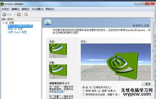 這個控制面板里面還有許多調節顯卡的選項,都可以試一下,順便提一下,雙顯卡是可以智能切換的,顯示桌面什么的集成顯卡就可以完成,而玩大型游戲就會切換到獨立顯卡進行處理~~~