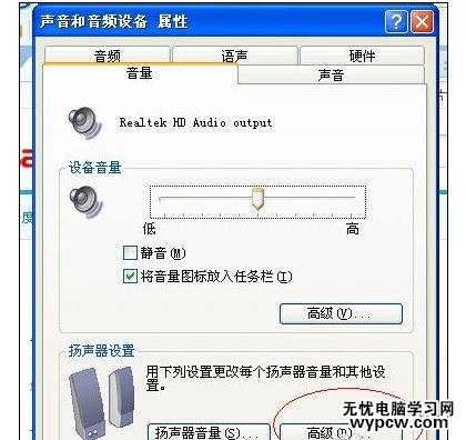 找到右下角的小喇叭,鼠標右擊--調整音頻屬性---有兩個高級,選擇下面那個高級。
