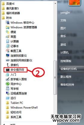 2.另外還可以依次點(diǎn)擊 開始>所有程序>附件>命令提示符