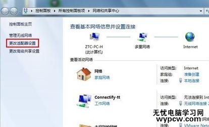 然后在彈出的新窗口中,點(diǎn)擊左邊的“更改適配器設(shè)置”,如下圖所示