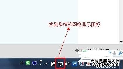 首先找到系統(tǒng)右下角任務(wù)欄的“網(wǎng)絡(luò)顯示圖標(biāo)”,并點(diǎn)擊鼠標(biāo)左鍵,如下圖所示
