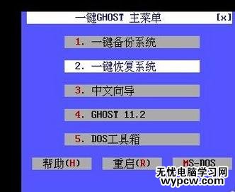想要重做系統的時候只需要在開始的時候選擇“一鍵GHOST”,然后一路回車進入到“一鍵GHOST主菜單”界面,然后選擇“一鍵恢復系統”即可,當然前提是你已經備份過系統,沒有備份系統可是沒有系統可以還原的哦。