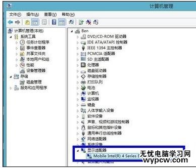然后在右窗格中點(diǎn)擊“顯示適配器”,檢查是否有嘆號(hào)或者問號(hào),如果有說明顯卡驅(qū)動(dòng)不正常。如圖所示