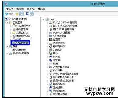 接下來在計(jì)算機(jī)管理界面的左窗格選擇“設(shè)備管理器”選項(xiàng),如圖所示