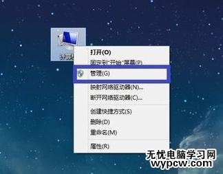 然后選中“計(jì)算機(jī)”并點(diǎn)擊鼠標(biāo)右鍵,再點(diǎn)擊“管理”選項(xiàng),如圖所示
