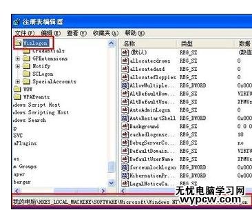 HKEY_LOCAL_MACHINE/SOFTWARE/Microsoft/windows NT/CurrentVersion/Winlogon