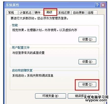 打開“系統屬性”窗口,切換到“高級”選項卡,單擊啟動和故障恢復的“設置”按鈕