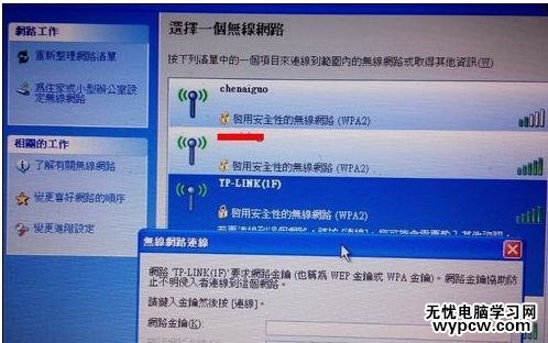 重啟電腦后再連接無線看看不是有輸入密碼的對話框出來了。輸入你的密碼。連接。
