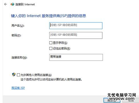 最后填寫寬帶的名稱和密碼,點擊連接,連接好了就撥號成功了。