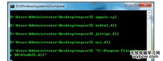 regsvr32 appwiz.cpl regsvr32 mshtml.dll regsvr32 jscript.dll regsvr32 msi.dll regsvr32 "C:/Program Files/Common Files/System/Ole DB/Oledb32.dll" regsvr32 "C:/Program Files/Common Files/System/Ado/Msado15.dll" regsvr32 mshtmled.dll regsvr32 /i shdocvw.dll regsvr32 /i shell32.dll