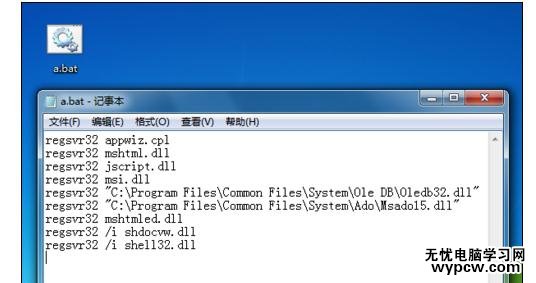 在排除電腦病毒導致電腦磁盤打不開的情況下,可能是電腦相關組件注冊信息丟失所導致。我們可以利用記事本創(chuàng)建一個名為“a.bat”的文件,輸入以下內容: