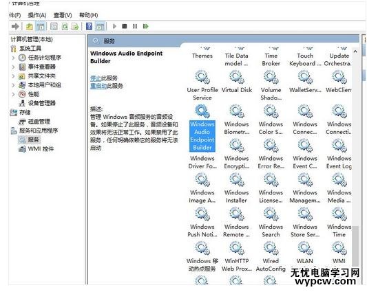 然后在窗口的右邊找一個名稱為“windows Audio”的選項。右鍵點擊,選擇“啟動”即可。