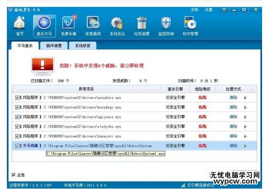檢查電腦是否中病毒木馬,建議使用金山衛士進行木馬查殺。