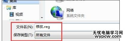 3、在桌面上,設(shè)置文件名,以.reg結(jié)尾,保存類型選擇所有文件,點擊保存即可,如圖所示: