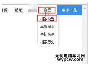 1、將鼠標(biāo)移動(dòng)到右上角的【設(shè)置】按鈕上,在顯示的菜單中點(diǎn)擊【搜索設(shè)置】;
