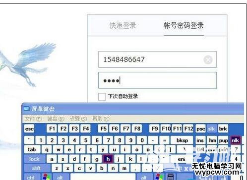 4、然后就彈出了經典的軟鍵盤,可以用鼠標代替鍵盤輸入了。