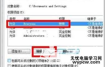 5、然后點(diǎn)擊允許字樣的“everyone ”選項(xiàng),點(diǎn)擊“編輯”;