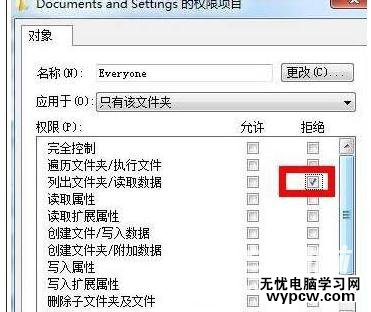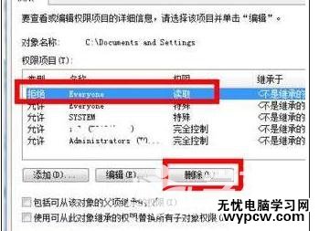 4、我們?cè)陬愋拖曼c(diǎn)擊帶有拒絕字樣的“everyone ”選項(xiàng),點(diǎn)擊“刪除”;