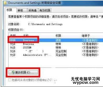 3、點(diǎn)擊“everyone ”,點(diǎn)擊“更改權(quán)限”;