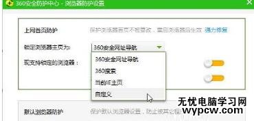 3、在“鎖定瀏覽器主頁為”后面下拉菜單中選擇“自定義”,然后輸入需要設置的主頁地址;