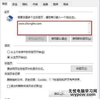 2、在主頁下面框中輸入需要設置的網址,比如:www.xitonghe.com ,設置好之后點擊應用并確定即可。