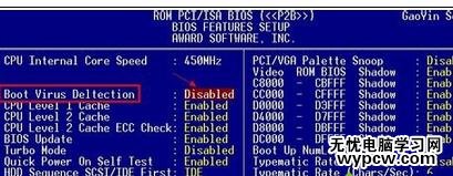 3、重啟電腦,在出現開機畫面時按下鍵盤(對于AWord來說,一般為”F12“鍵)對應鍵進入CMOS設置,進入”BIOS Features Setup”,將“Virus Warning”(病毒警告)設置為“Disabled”;