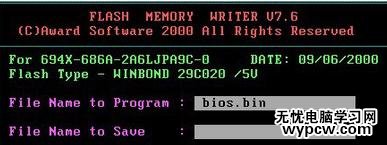 9、在“File Name to Save”框中輸入要保存的文件名:BACK.BIN。按回車后,刷新程序開始讀出主板的Bios內容,并把它保存成一個文件;