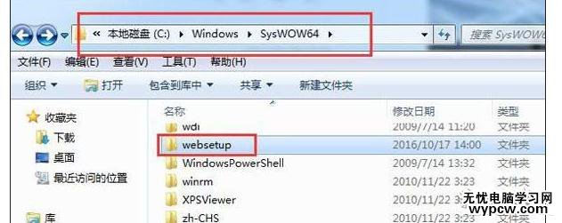 3、最后返回SysWOW64文件夾,找到websetup這個文件夾,將其刪除掉,重新運行dxwebsetup.exe即可,如圖所示: