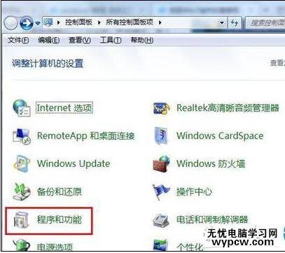 2、在控制面板中,接著點擊“程序和功能”選項,如下圖所示: