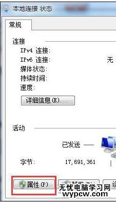 3、接著在本地連接窗口中點擊屬性按鈕,如圖: