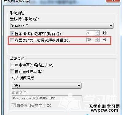3、取消勾選“在需要時顯示恢復選項的時間”并點擊確定保存設置,如圖所示: