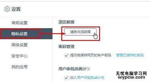 2、在左側點擊“隱私設置”,點擊右側的“清除瀏覽數據”;