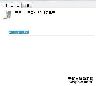 3、最后在帳戶:重命名系統(tǒng)管理員帳戶屬性窗口中進(jìn)行更改administrator名稱即可,如圖所示: