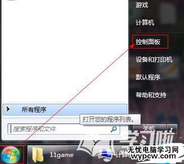 1、點(diǎn)擊開(kāi)始然后單擊控制面板進(jìn)入win7控制面板。