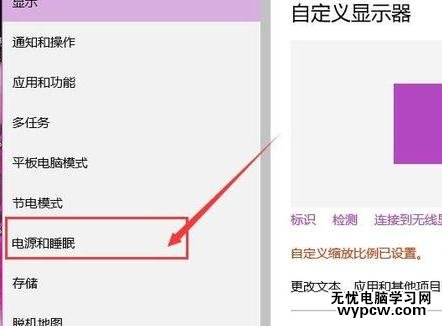 在Win10Modern應(yīng)用設(shè)置頁(yè)面中,點(diǎn)擊設(shè)置頁(yè)面左側(cè),在彈出的菜單中點(diǎn)擊選擇“電源和睡眠”選項(xiàng),點(diǎn)擊該選項(xiàng)之后即可設(shè)置Win10電源設(shè)置。