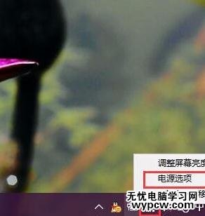 在Win10系統(tǒng)中,除了在Modern設(shè)置應(yīng)用界面修改以外,我們還可以按照常規(guī)的辦法來(lái)修改系統(tǒng)設(shè)置。在Win10系統(tǒng)系統(tǒng)托盤(pán)圖標(biāo)中,右鍵點(diǎn)擊“電源”按鈕,選擇“電源選項(xiàng)”菜單。