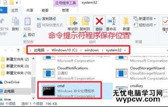 7最后我們對命令提示符程序的存放位置最好最下了解,位置在C:/windows/system32文件夾中,其實電腦的很多管理工具都在這里面可以查看到。