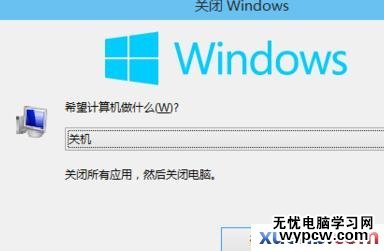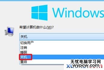在彈出的選項中我們選擇”關(guān)機“這樣也是可以正常進行關(guān)機的。
