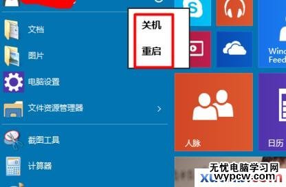 `2我們點擊“開關(guān)按鈕”這樣我們看看是不是彈出了“關(guān)機”或“重啟”呢?這樣我們可以根據(jù)自己的需要進行“關(guān)機”或“重啟”