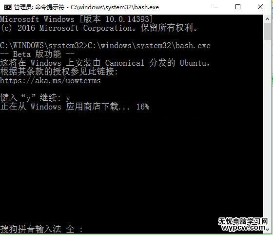 第一次打開bash窗口,如圖,輸入y下載即可。
