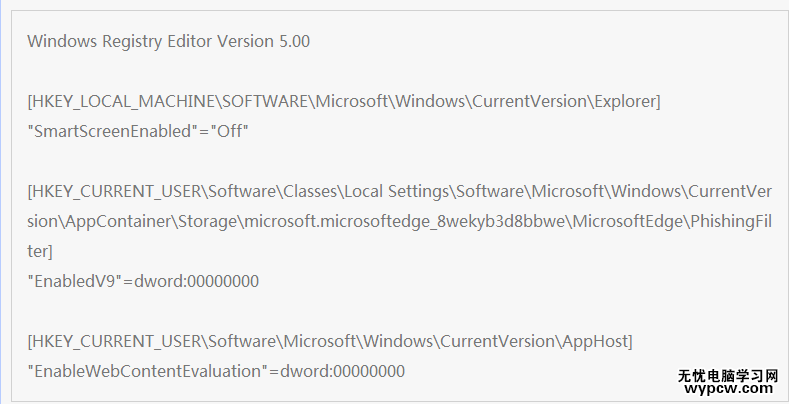 為了節(jié)省您的時間,你還可以直接使用下面的注冊表文件。您只需導(dǎo)入以下* .REG文件即可一次性禁用所有SmartScreen功能: