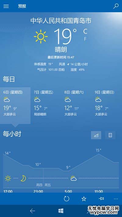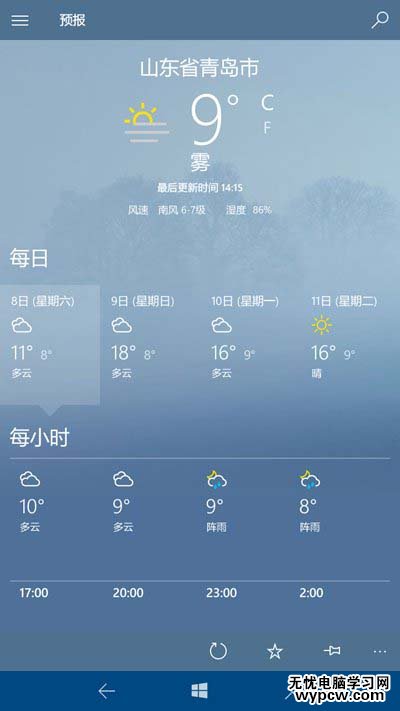 如果你的Win10區域設置是中國大陸,那么現在,你可以檢查你的Win10 PC或Win10手機當中的MSN天氣,未來幾天和未來幾個小時的天氣數據已經可以正常顯示了。