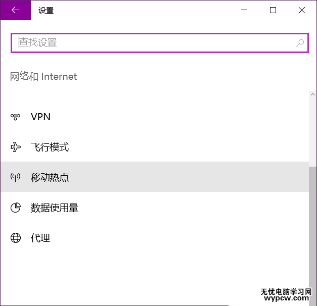 在網(wǎng)絡(luò)和Internet中點擊“移動熱點”