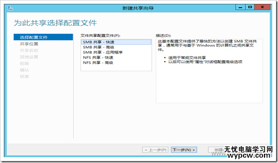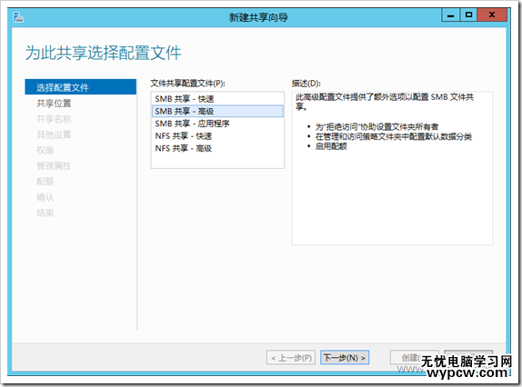 3、這里我們主要說一下第二種,選擇“SMB共享-高級“,點(diǎn)擊”下一步“