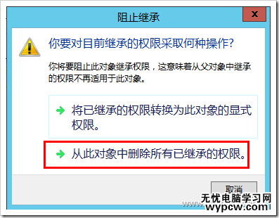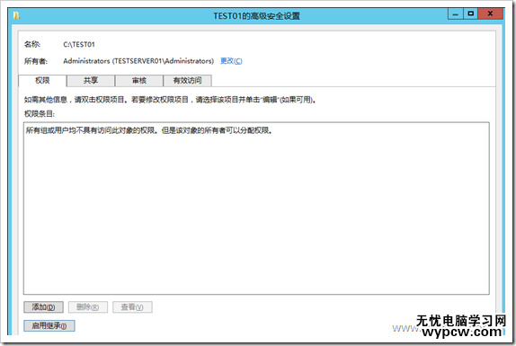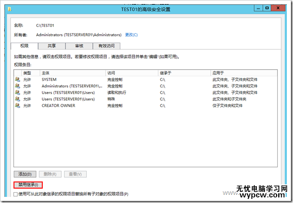 7、我們先禁用繼承的權(quán)限,再手動添加權(quán)限
