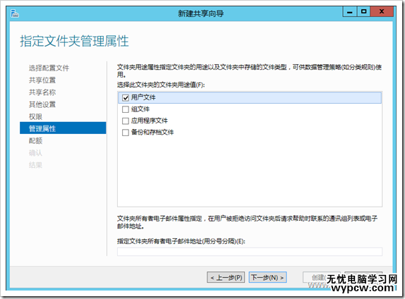 13、這是設(shè)置文件夾的用途有四種,主要用于分類規(guī)則管理等,這里我們選擇”用戶文件“