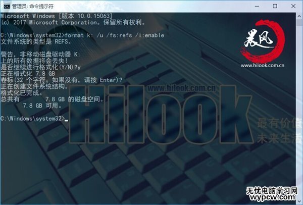 Hilook提示:上述命令是讓k盤用ReFS 1.2格式進行分區。