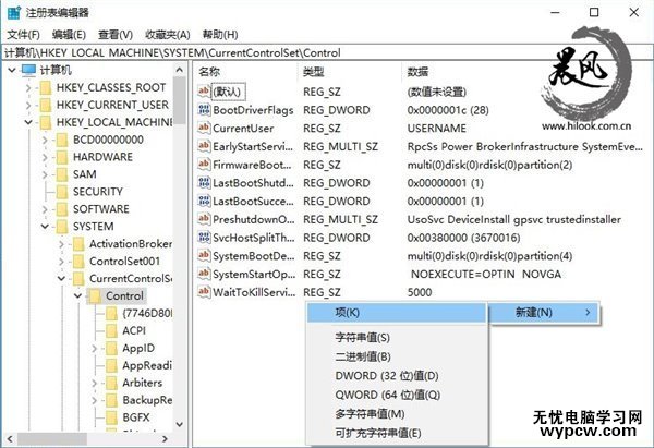 3、定位到HKEY_LOCAL_MACHINE/SYSTEM/CurrentControlSet/Control