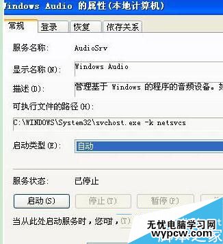 5.將Windows Audio中的啟動(dòng)類型改為自動(dòng),然后啟用就好了;